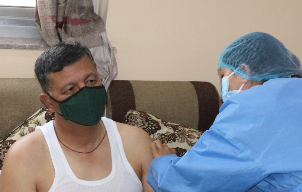 काठमाडौँ — प्रधानसेनापति पूर्णचन्द्र थापाले कोभिड- १९ (कोरोना भाइरस)विरुद्धको खोप लगाएका छन् ।